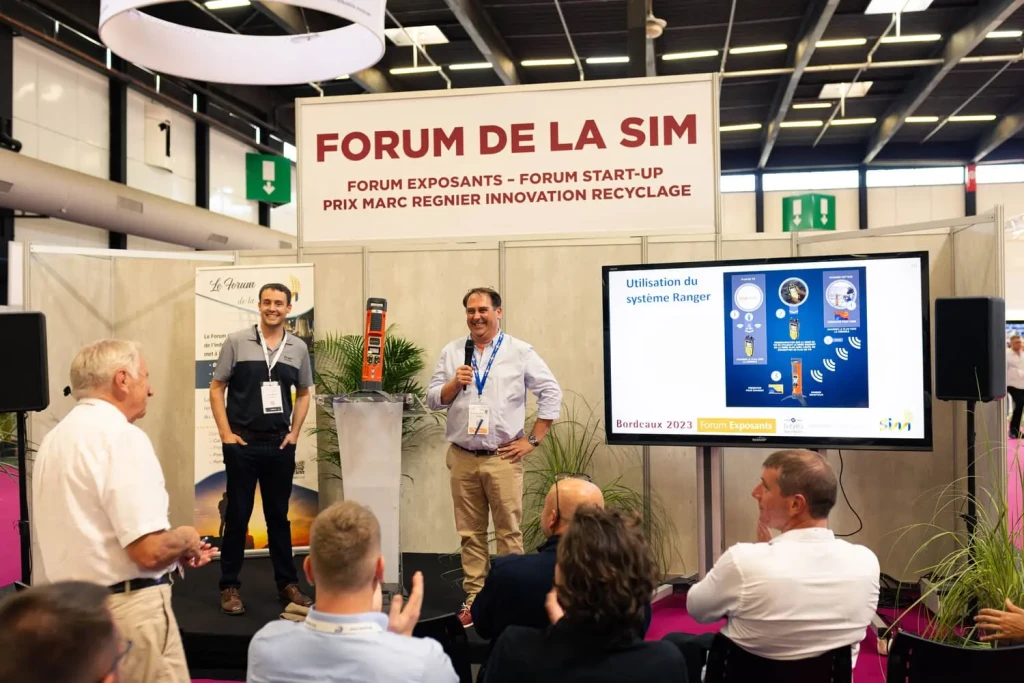 | Cette année, à Bordeaux, l’exposition a rassemblé 6 400 participants, dont 3 130 visiteurs pendant 2 jours et demi, soit une progression de 20 % pour les visites par rapport à l’édition précédente. L’exposition montrait : 360 stands, répartis sur 12 000 m2 ; 1 exposition extérieure qui a mobilisé, sur 5 000 m2, 25 entreprises, avec 28 machines (groupes mobiles de concassage et de criblage, chargeuses, foreuses, pelles, tombereau) et 10 petits équipements (pneus, élévateurs, pompes, BRH, godets) ; 10 exposants et 10 start-up sélectionnés pour participer au Forum de la Sim, qui a réuni 200 personnes sur 2 jours ; 67 offres d’emplois et de stages (et une offre de thèse), déposées par 35 entreprises. Le congrès a proposé : 6 visites techniques, 1 séance inaugurale et 7 ateliers techniques qui ont attiré 550 personnes sur 3 jours et demi, grâce à la mobilisation de 60 conférenciers et 14 animateurs ; 1 Forum jeunes ayant réuni 4 classes et 134 lycéens et leurs accompagnants venus découvrir les métiers de l’industrie minérale ; 4 remises de prix et de médailles, et, nouveauté 2023, la première édition du Prix start-up de la Sim, décerné cette année à GeoLinks ; |