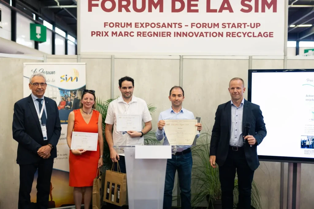 Eric Cinar (Centre Terre et Pierre) est le lauréat 2023 du Prix Marc Regnier de l’innovation en recyclage et valorisation pour son travail sur le traitement du lacto-gypse et la caractérisation des sulfates de calcium obtenus en fonction des applications envisagées. Félicitations aux deux autres nominés, Claudia Neculau (Remind Wallonia) et Mickaël Dadé (Eramet). © Sim/JPMR